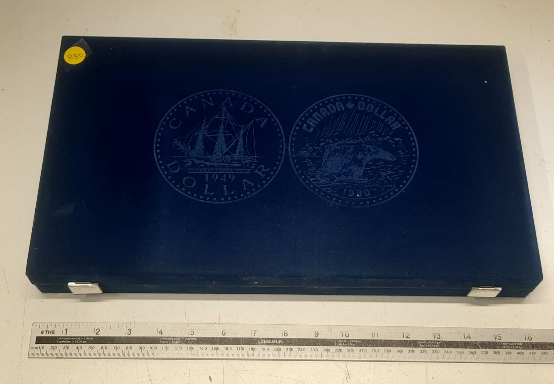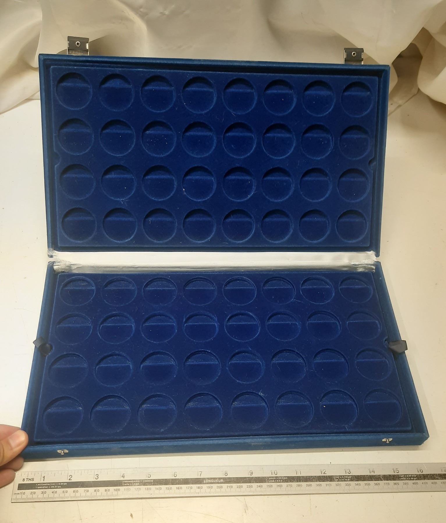 Empty velvet case with 2 trays for storing 64 Canadian Silver Dollars. Used.