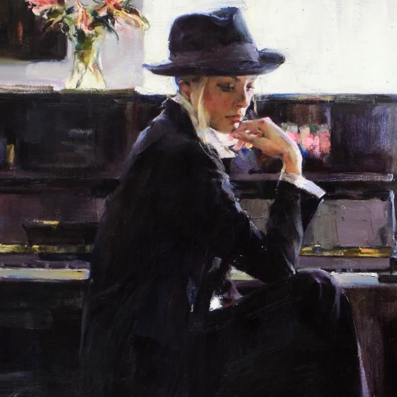 "En Vogue" is a limited edition hand embellished giclee on canvas by the husband and wife team, Mikhail and Inessa Garmash! This piece is numbered and hand signed by the artists! Includes Certificate of Authenticity! Measures approx. 40" x 22" (image).