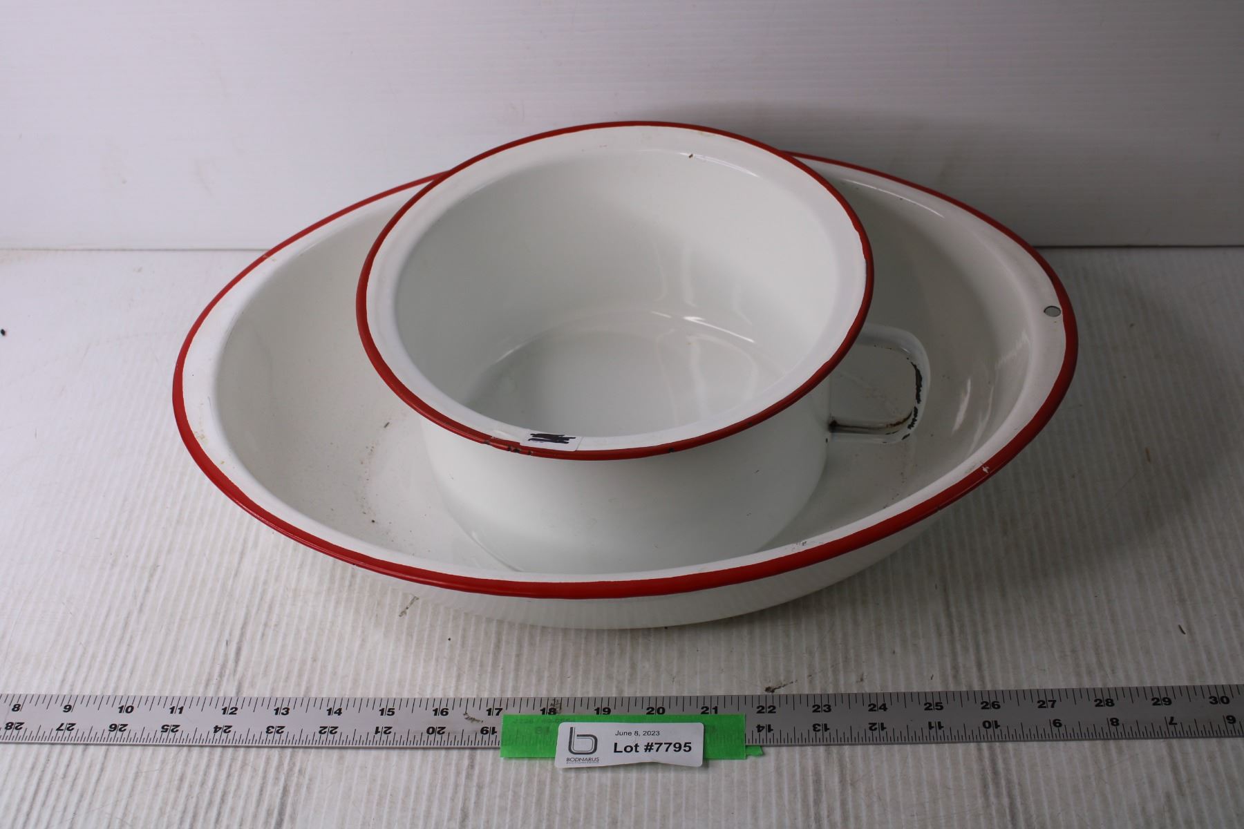 Enamel Basin and Bowl with Handle