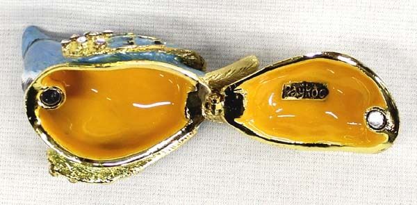 Enamel Blue Jay Trinket Box, measures 2.25''L x 2''H, enamel with rhinestone bling