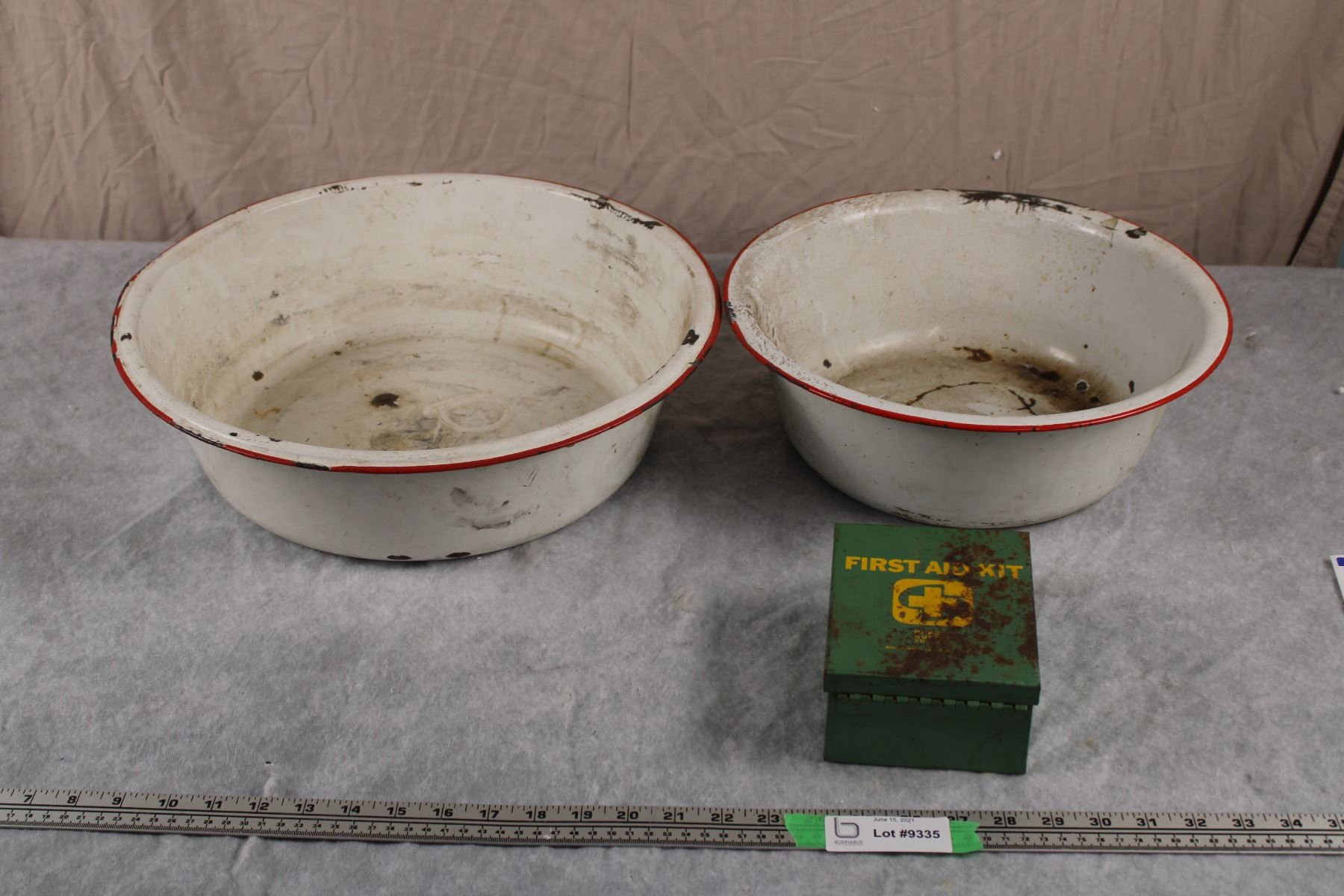 Enamel Bowls + Vintage First Aid Kit