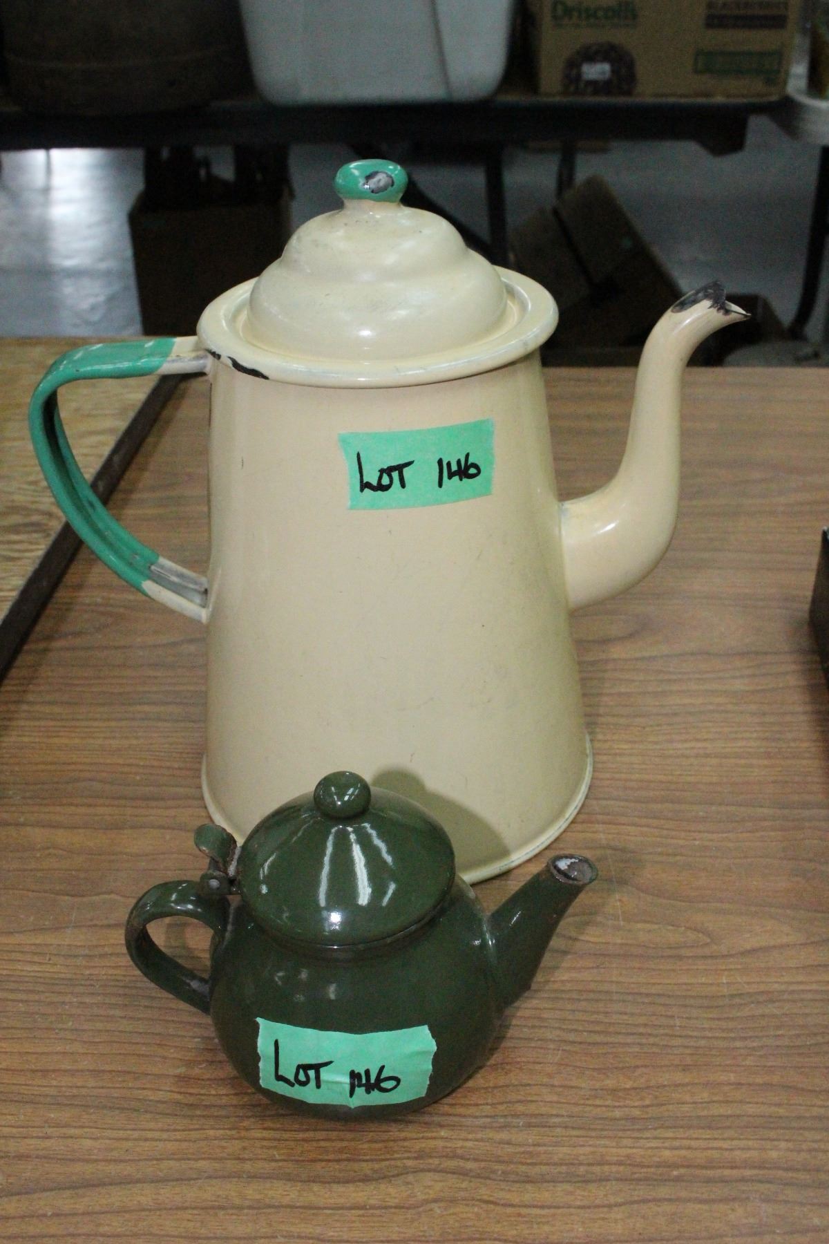 Enamel Coffee Pot and a Creamer