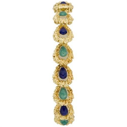 <B>Enamel, Gold Bracelet</B></I><BR><BR>The bracelet features blue and green enamel applied on 18k yellow gold, enhanced by gold nugget style. Gross weight 21.30 grams. <BR><I>Length: 6-1/2 inches</B></I> <B>Condition Report:</B> Very good condition.<BR><BR><b>Shipping:</b> Miscellaneous Collectibles, Smal (<a target="_blank" href="http://www.heritageauctions.com/common/shipping.php">view shipping information</a>)