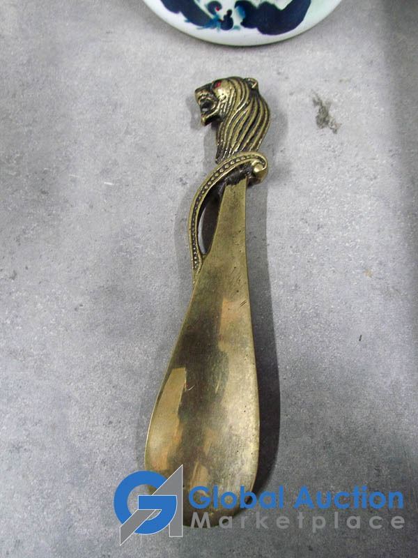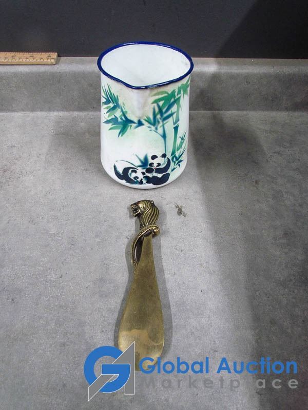 Enamel Pitcher and Brass Shoe Norn