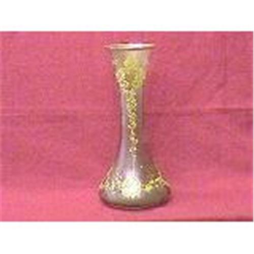 This is an enamel painted French Vase from 19th CT in good condition(No mark- no crack- no chips), It is in nice mild iridescent green color swirl panels glass decorated with enamel gold painted flowers and gold rims. H:12" and W:on the base is 5.3/4" .