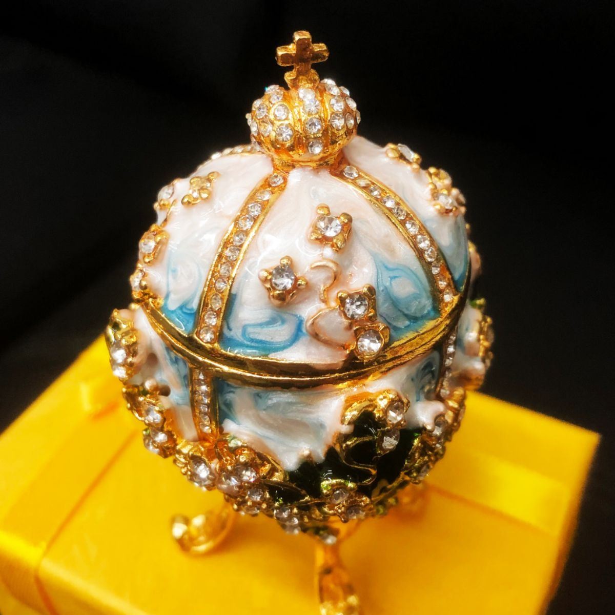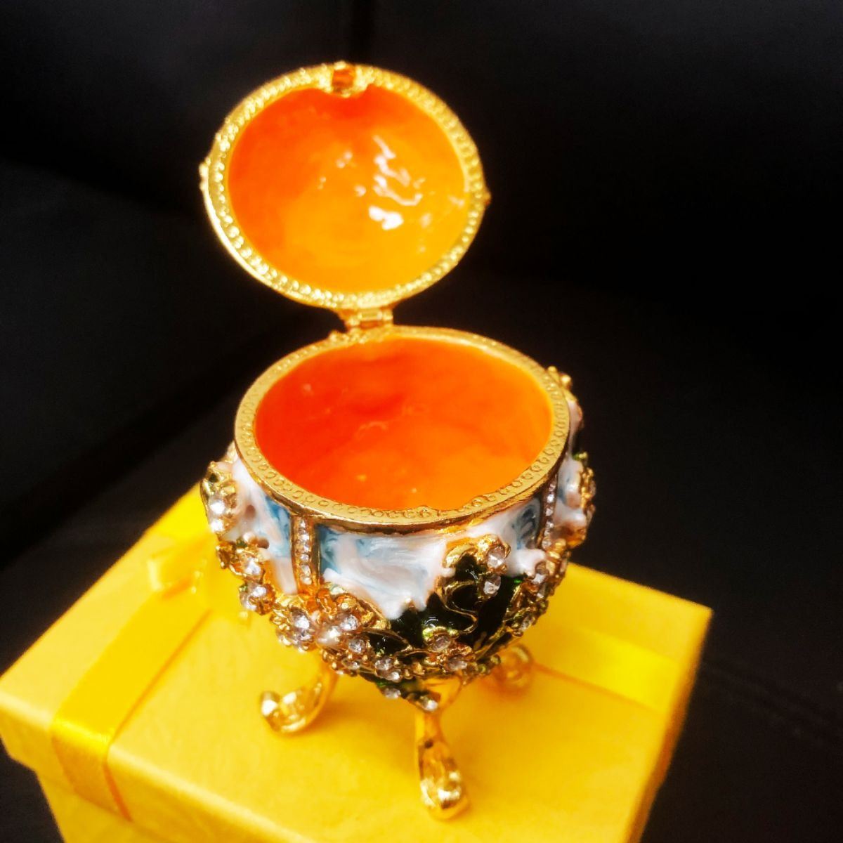 A Decorated Open Top Egging Box. The Egg Is Decorated With Semi-Precious Stones and Will Make a Great Center Piece Or Conversation Piece In Your Dining Area. View Photos For Further Details