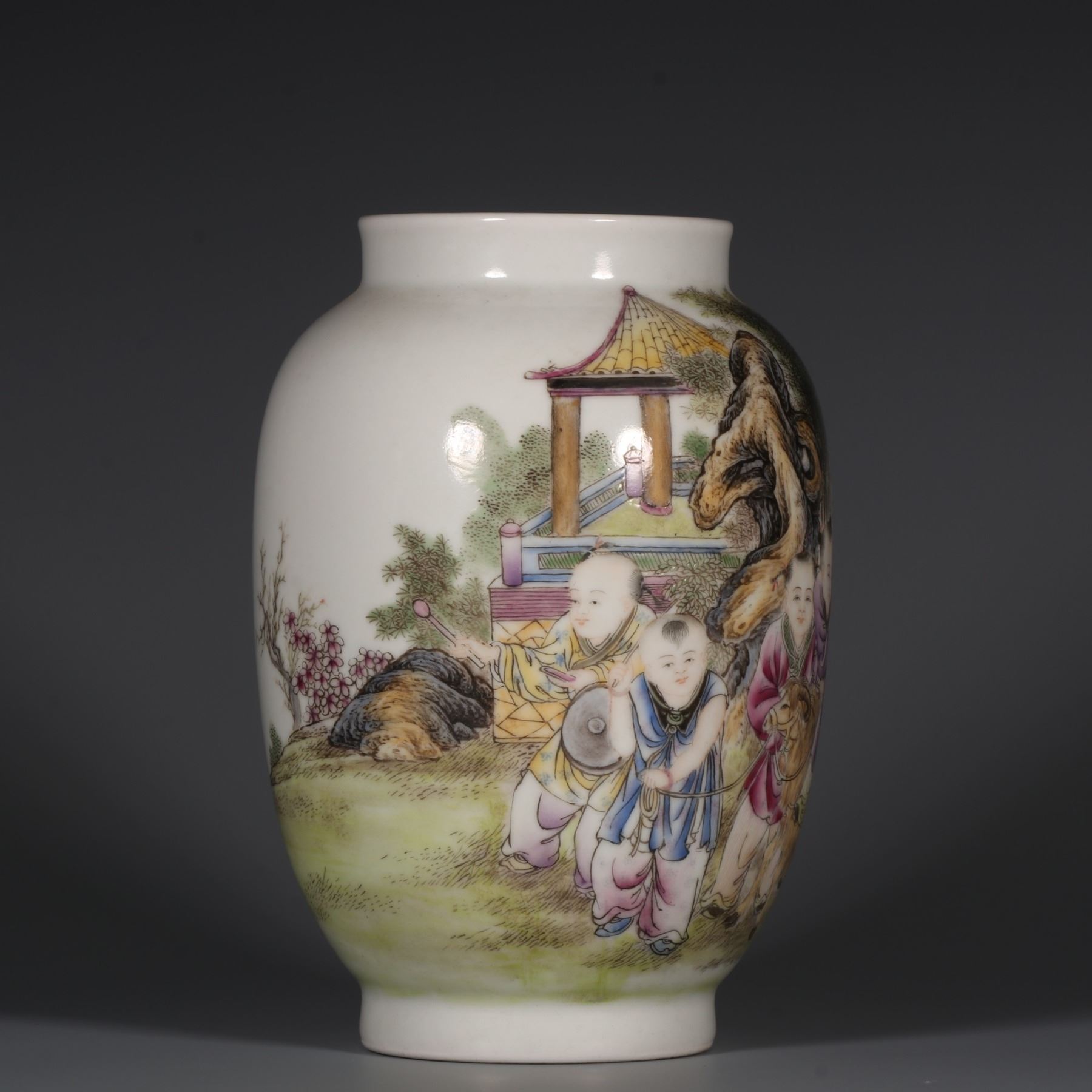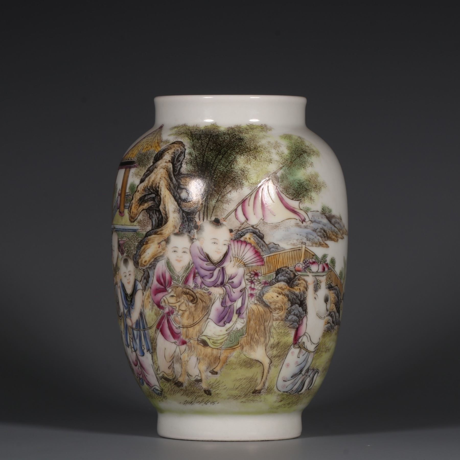 Enameled Figures Vase, Daqing-Qianlong Nianzhi Mark