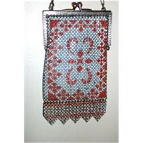 A beautiful rust and pale blue enameled mesh Mandalion bag. A very unusual and striking color combination. The bag is in excellent condition.