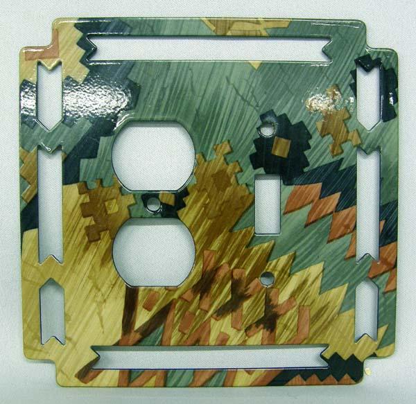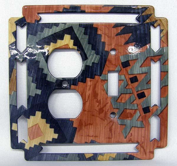 Enameled Reversible Southwestern Outlet Cover. Measures approx. 6''x6''. Buyers Pay Actual Shipping and Handling Charges(see terms and conditions for more information).