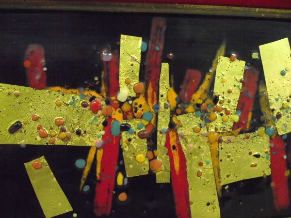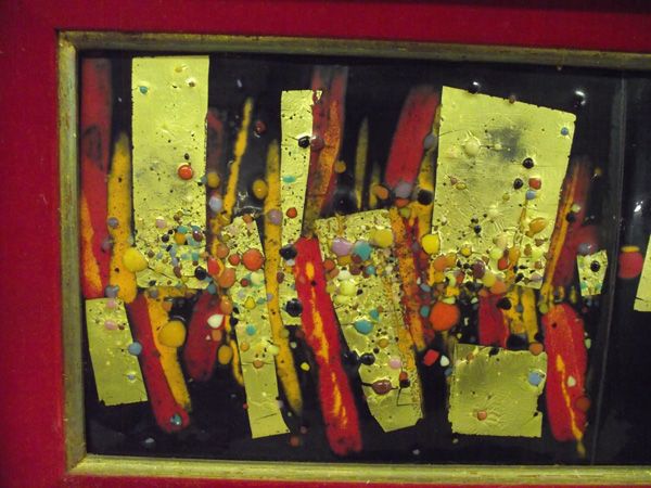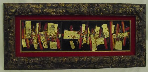 From his personal collection comes this Framed Enamelware Art in a Gilded Frame by Jim Proctor. This wonderful piece with its vivid colors has a visual measurement of approx. 25''H x 7''W.