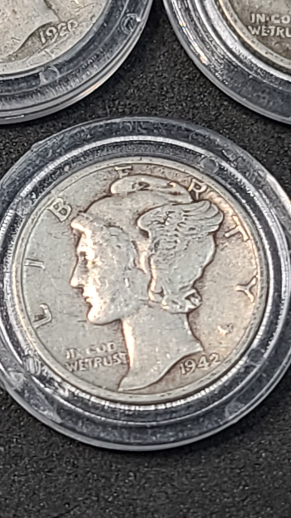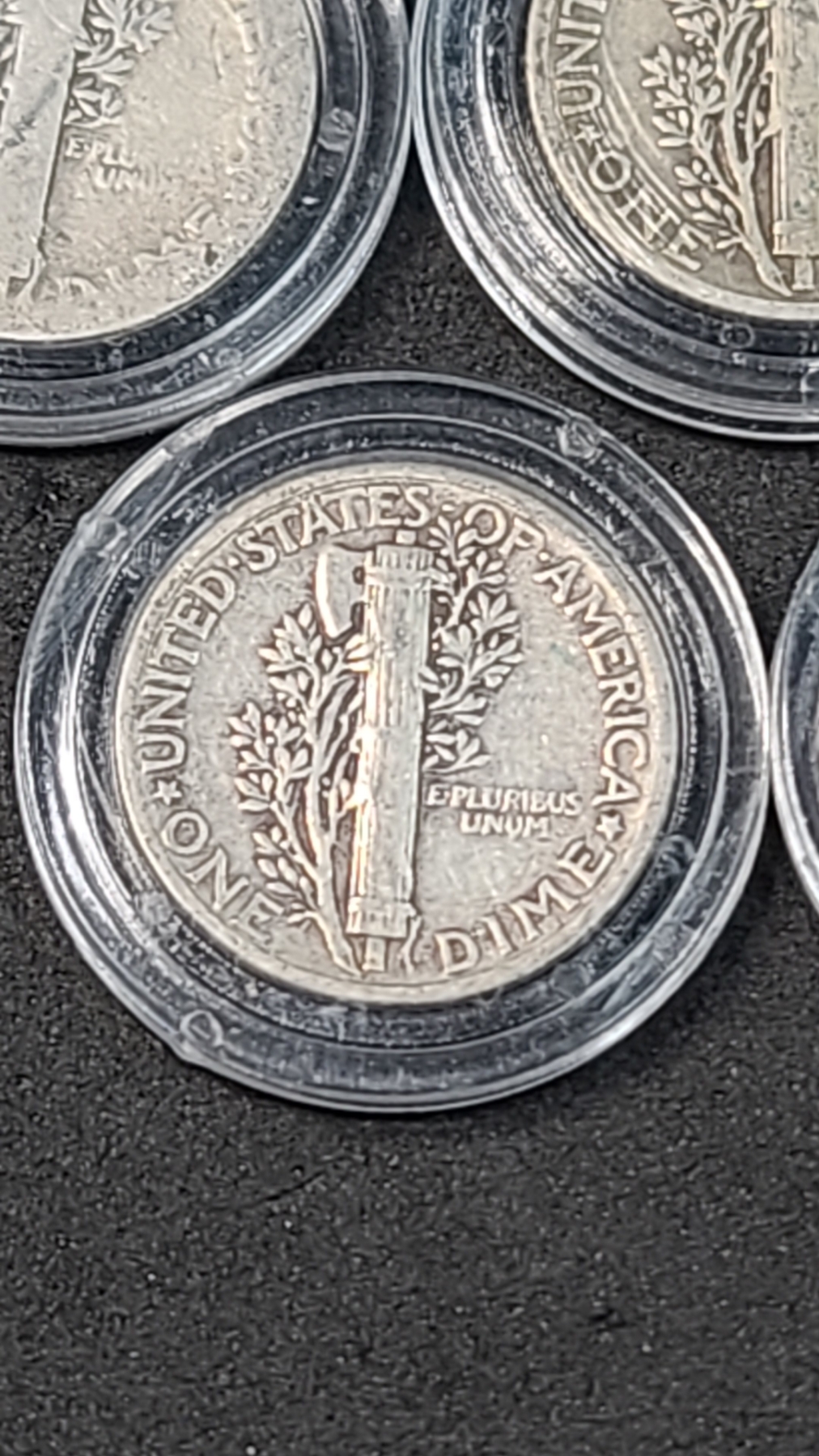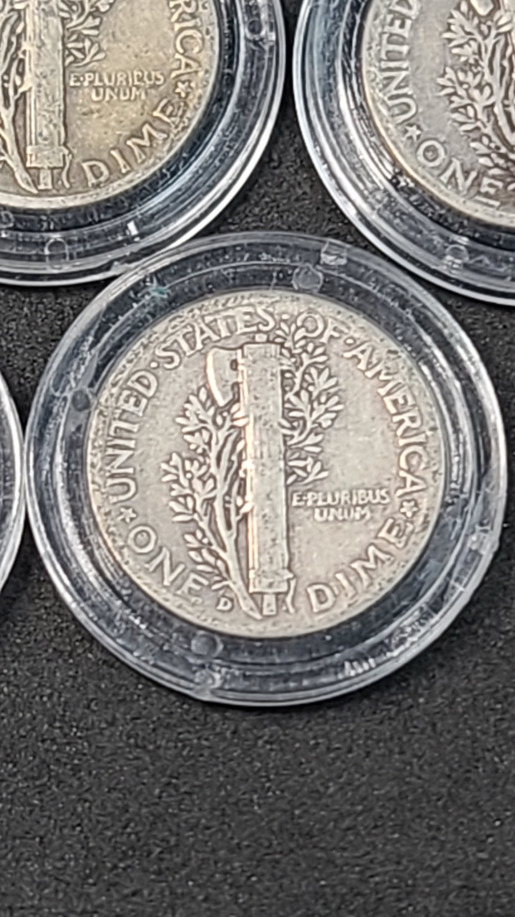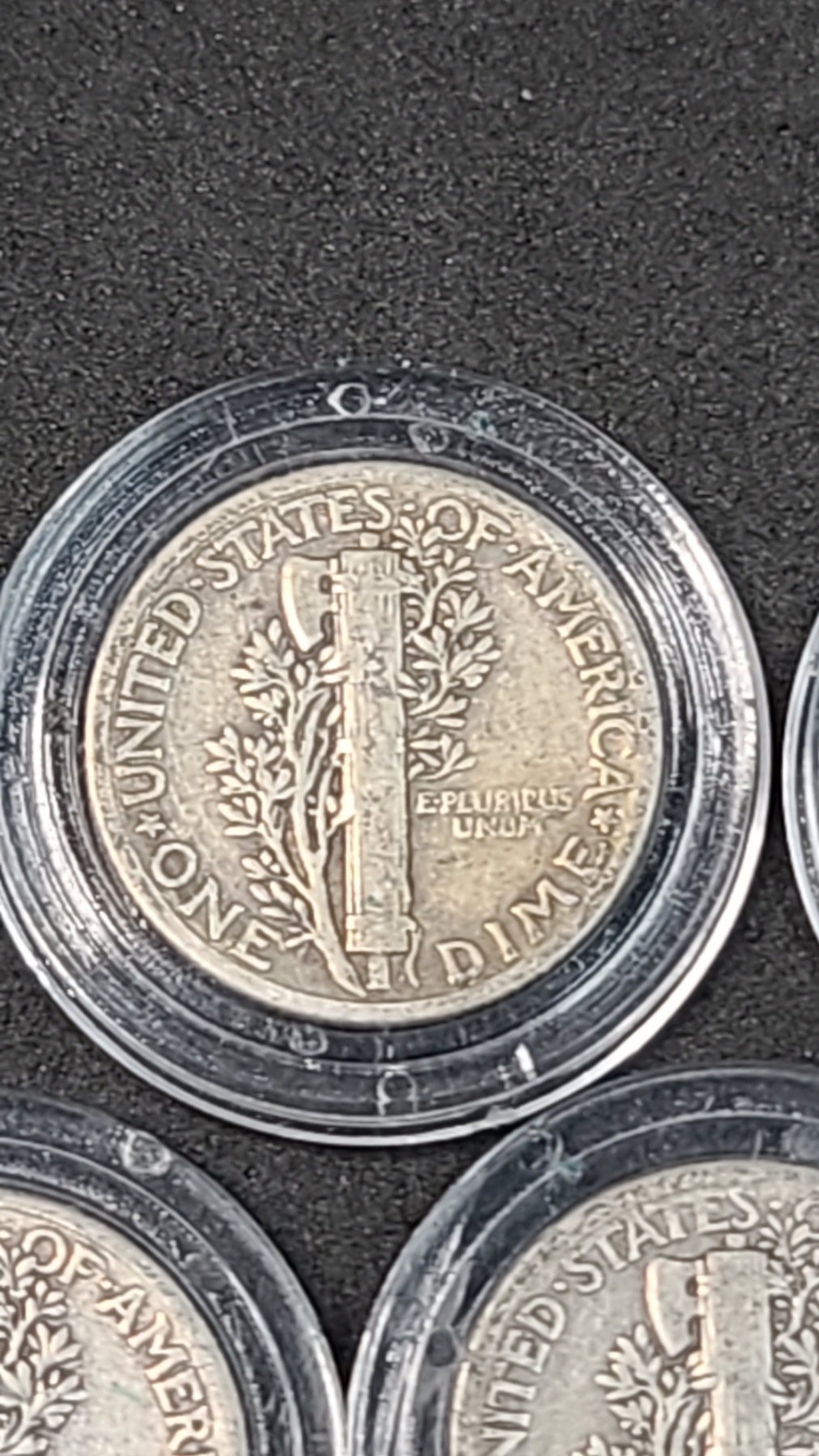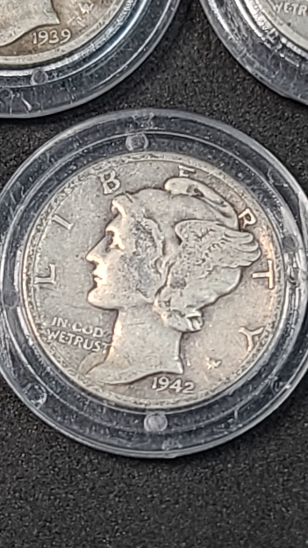 Encapsulated 1920, 1939, 1941, 1942, 1942-D 90% Silver Mercury Dimes - Face Value: $0.50