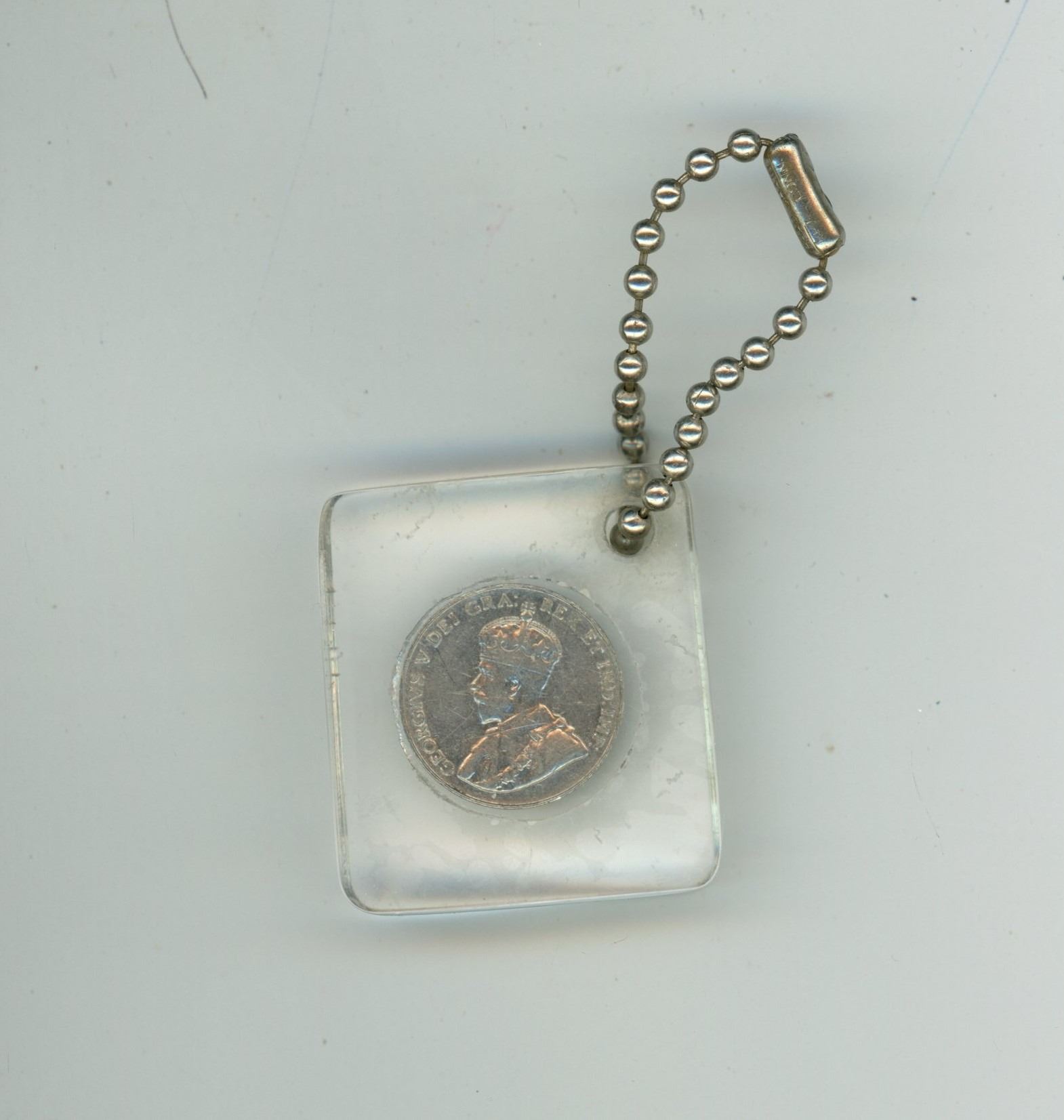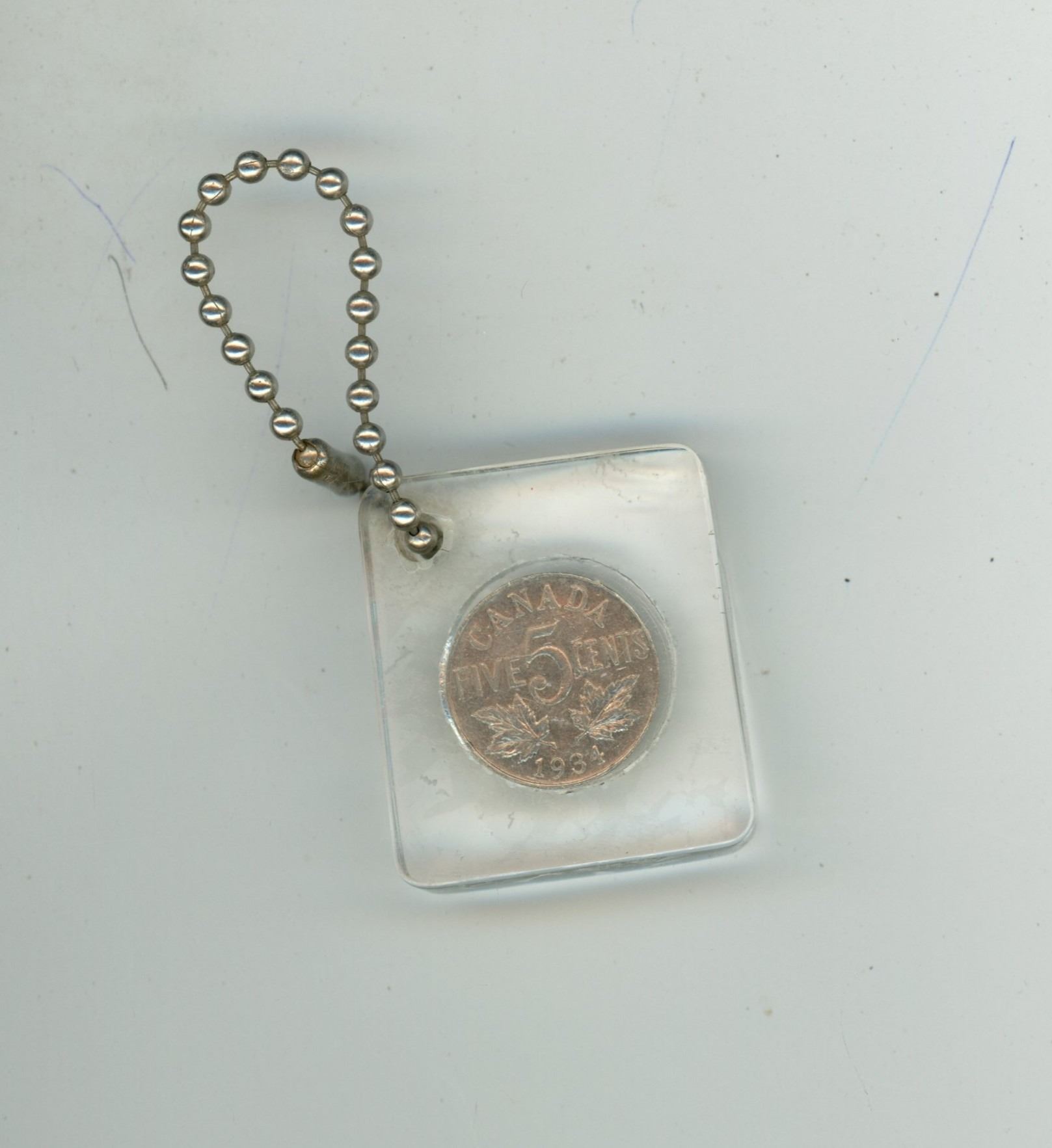 Encased Canadian George VI 1934 Nickel 5 Cents Key Chain.