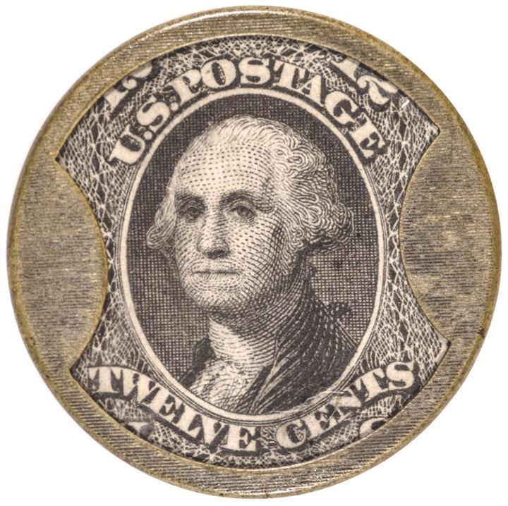 Encased Postage Stamp, Twelve Cents. J. GAULT. RIBBED FRAME Type Extremely Fine