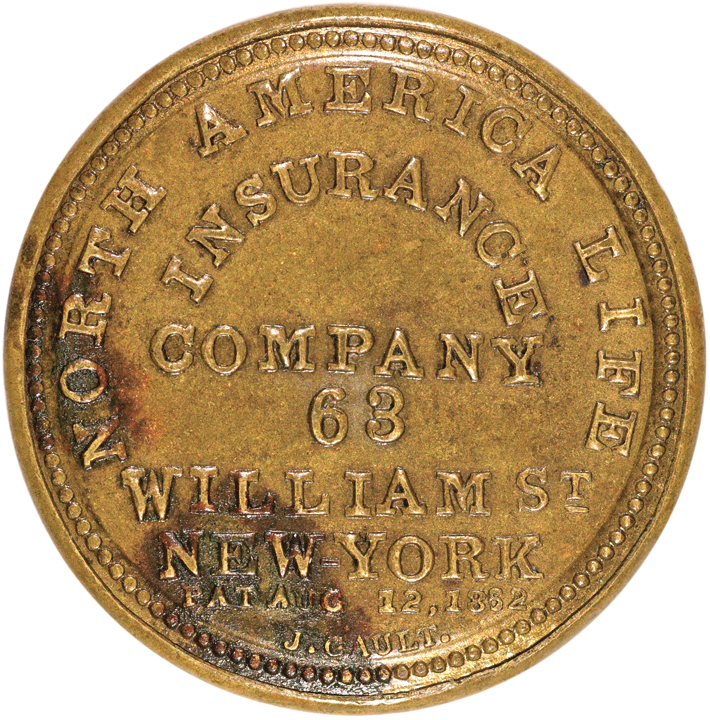 EP-125a, HB-196, S-143a, Reed-NA10CU. Ten Cents. NORTH AMERICAN LIFE INSURANCE COMPANY. New York. Plain Frame with Curved “INSURANCE”. Choice Extremely Fine.
