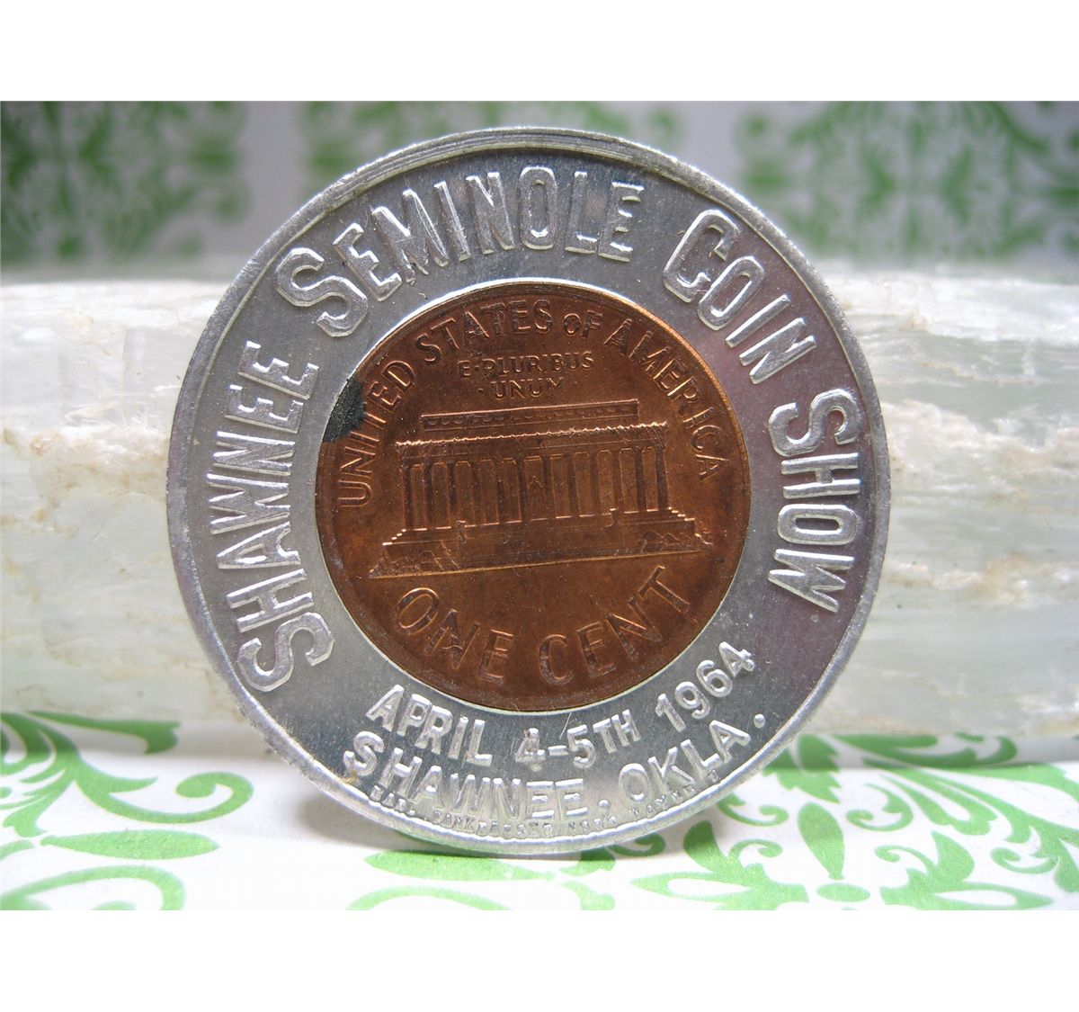 (1) Encased cent 1963-D SHAWNEE SEMINOLE COIN SHOW OKLA.