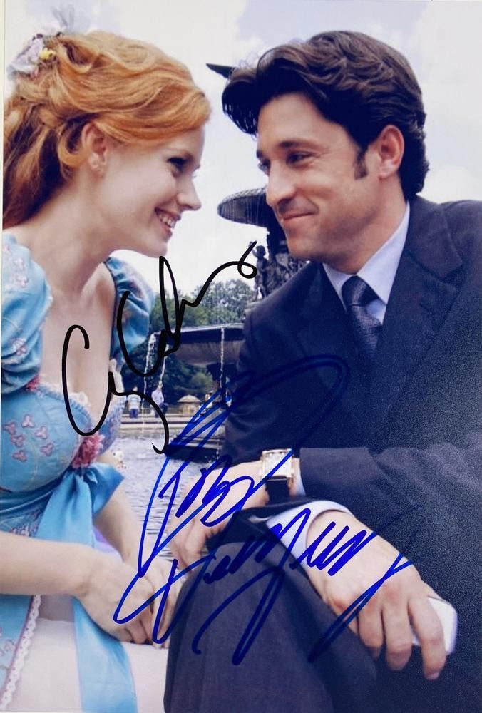 Enchanted Amy Adams and Patrick Dempsey facsimile signed movie photo. 8x10 inches. This item is a reprint of an original autograph