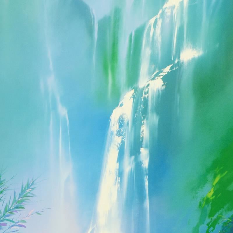 "Enchanted Cascades" is a hand embellished limited edition giclee on stretched canvas by Thomas Leung, numbered 3/25 and hand signed by the artist. Includes Letter of Authenticity. Measures approx. 18" x 31" (image).