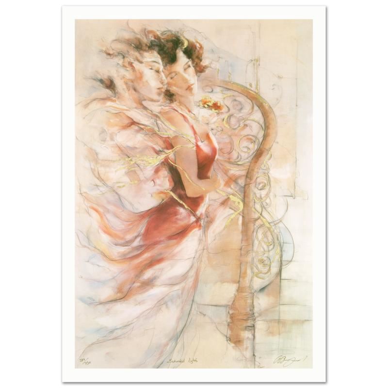 Full of emotional imagery and talented artistry, Gary Benfield's art is perfect for any collection. "Enchanted Nights" is a limited edition serigraph on paper, numbered and hand signed by Benfield. Includes Certificate of Authenticity! Measures approx. 19" x 27" (with border), 17" x 25" (image).