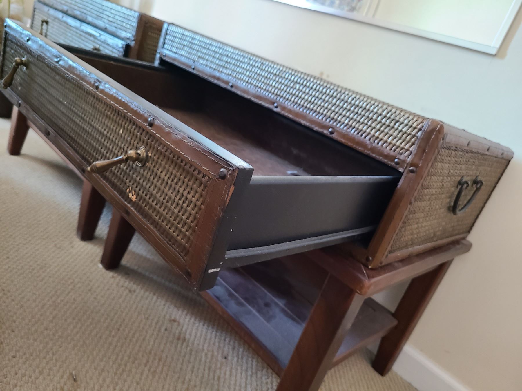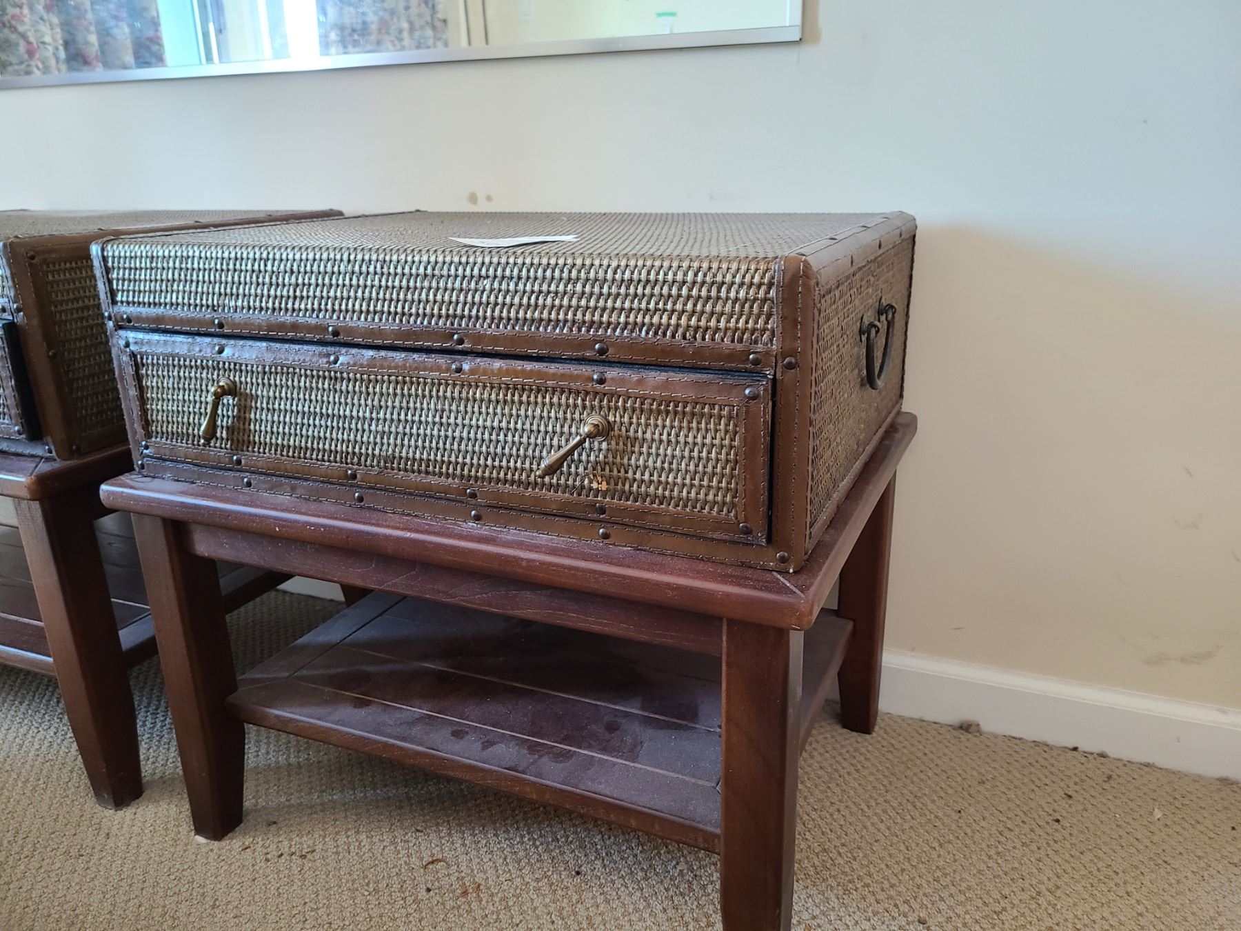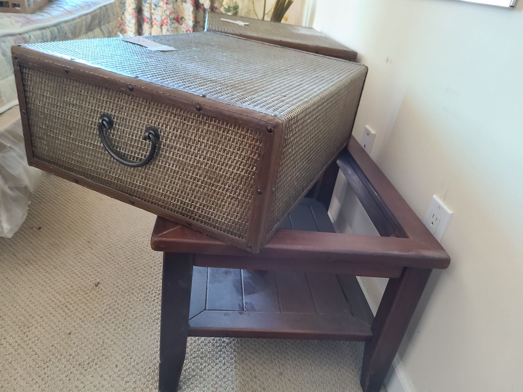 End table missing glass insert for top 25X1914. Decorative drawers 18x24x8 Pickup at 10 am