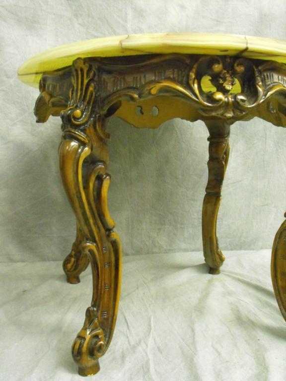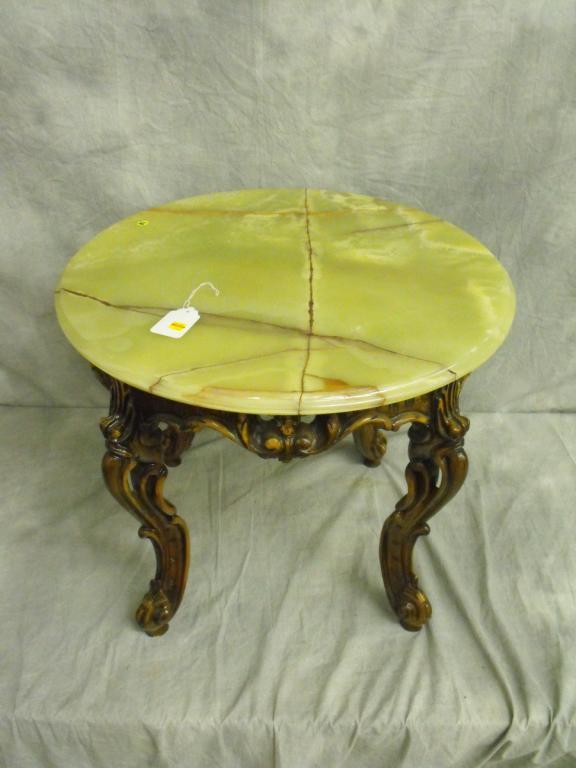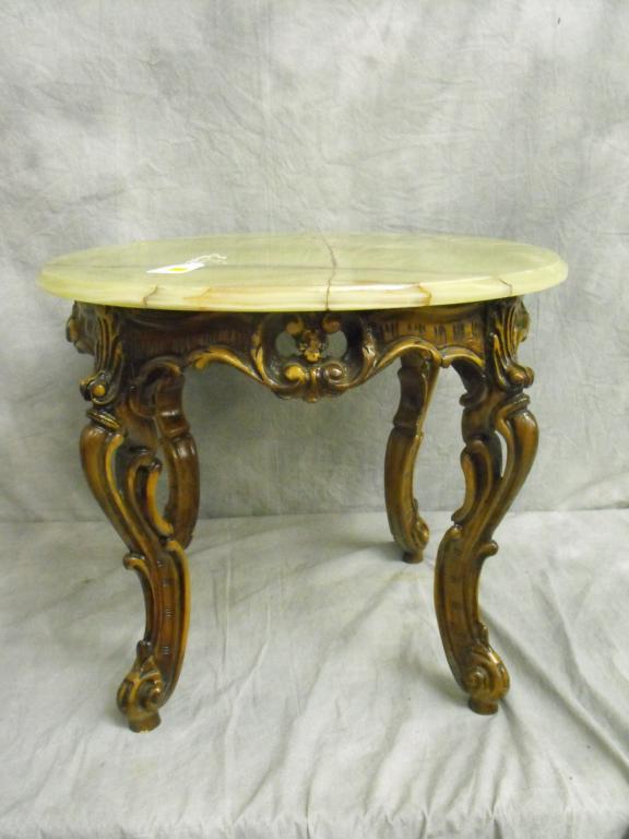 Louis XV Carved Walnut End Table with Pierced with Carved Walnut Aprons of Rocail Foliate Motif and Roses With Molded Edge Circular Persian Marble Top, WIth Carved Capriole Legs and Scrolled Toes Excellent Coldition 21" Tall 26" Diameter