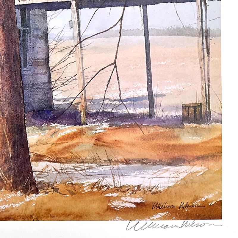 End of Season by Nelson, William. "End of Season" is a limited edition lithograph from an AP edition on paper, hand signed by William Nelson. Includes Letter of Authenticity. Measures approx. 28.5" x 22.5" (border), 25" x 19" (image). ** Please note: the top-right and bottom-left corners are bent. **
