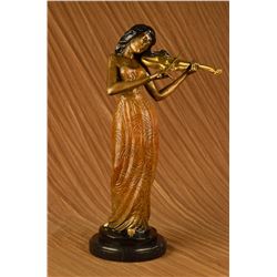 12 LBS Special Patina Bronze Art Deco Violin Player Bronze Sculpture (19"X10")