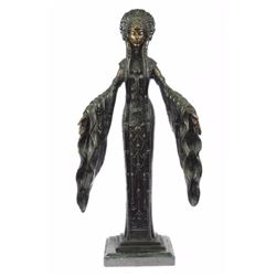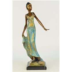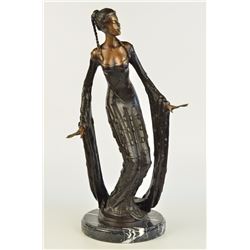 19 LBS Art Deco Indian Girl With Long Gown Bronze Statue (20"X10")