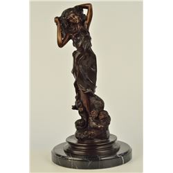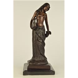 13 LBS Topless Woman With Two Jugs Bronze Sculpture (16"X7")