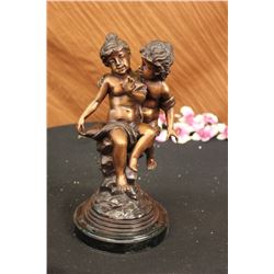 18 LBS Man Serenading Young Lady Violin Player Bronze Sculpture (19"X11")