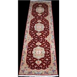 captivating hand woven tabriz design runner w/silk highlights. size 2.3 x 10 feet, made of fine quality lamb's wool/part pure silk pile on cotto...