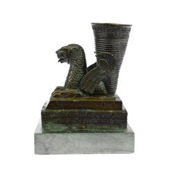 Persian Sasanian Dynasty Dragon Peacock Bronze Sculpture on marble base (7"X6")