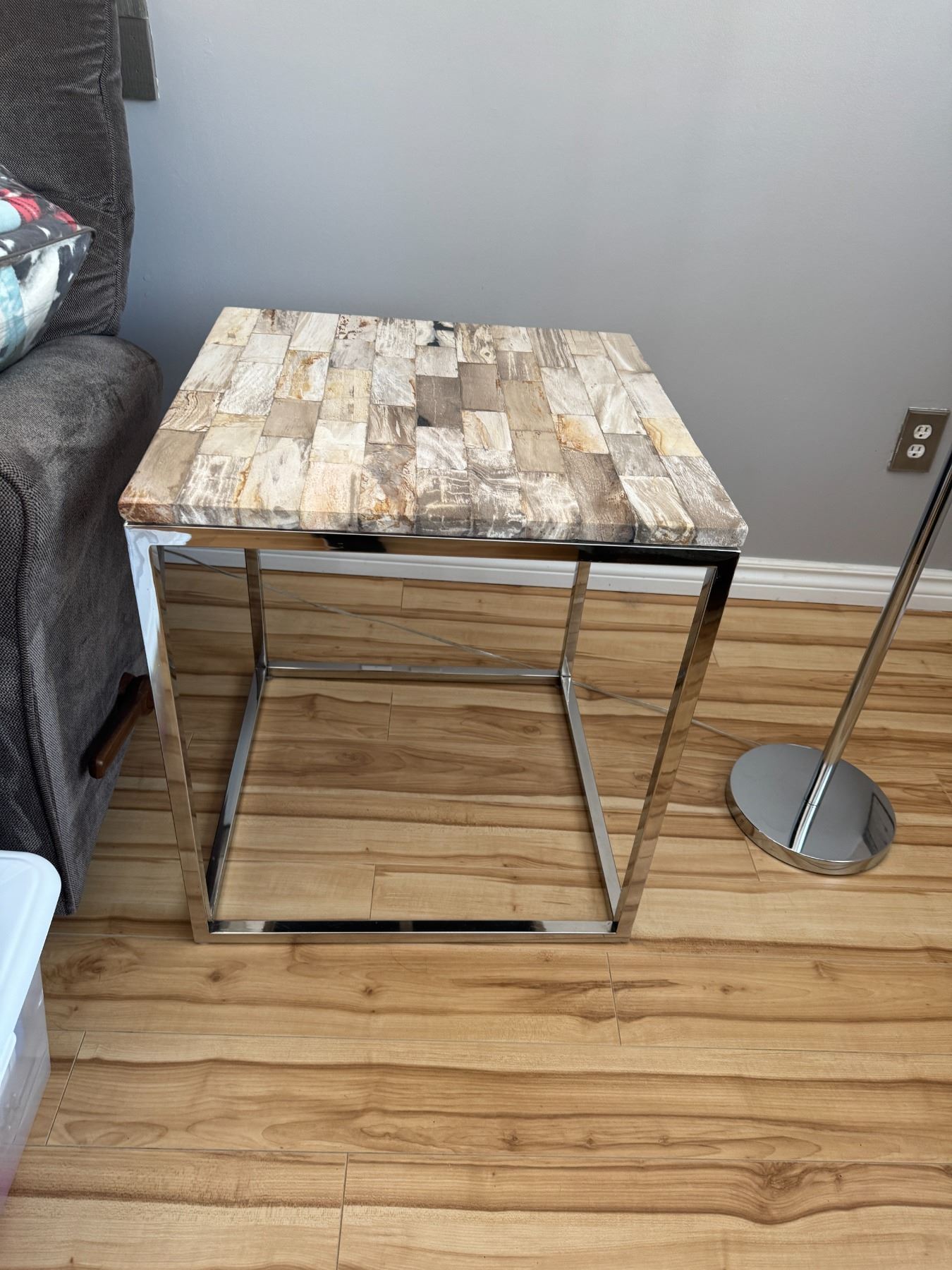 End table Measure 21 3/4 inches by 21 3/4 inches and 24 inches tall