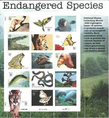 Endangered Species Collectible Sheet of Fifteen 32 Cent Stamps Scott 3105 By USPS