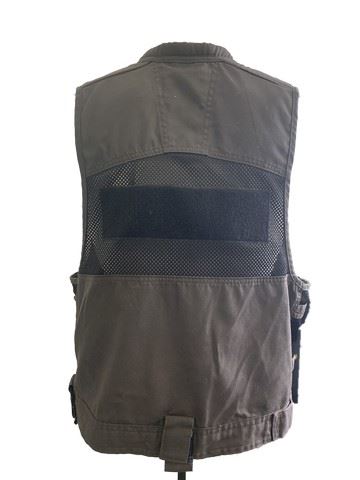 Ender's Game - Crazy Tom's (veteran leader of C toon in Dragon Army) utility vest with pockets and black netting by the shoulders and back. Velcro strap across the back. (size L)
