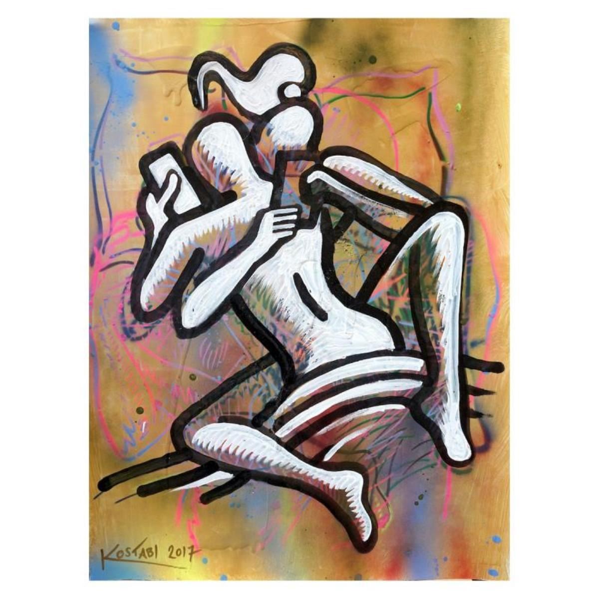 Endless Desire by Kostabi Original. "Endless Desire" is a mixed media original painting on paper, by Mark Kostabi. The piece is hand signed and comes with a certificate of authenticity. Measures approximately 30" x 22.5".