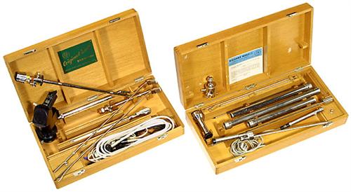 Endoskop und Rektoskop, um 1950 1) Rektoskop-Ausrüstung von "Richard Wolf". - 2) Endoskop-Set von "Richard Wolf". - Und: 3) Endoskop-Kopf, mit Prisma "Carl Zeiss".