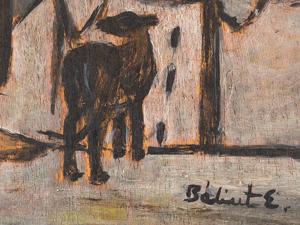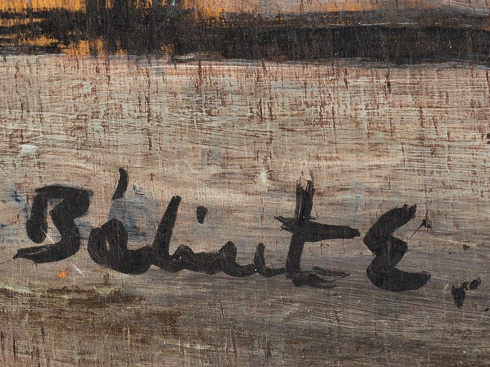 The painting is signed lower right, ‘Bálint E.’. It is in very good condition, showing only minimal framing marks. The wooden frame has only light wear marks, too. The overall dimensions, framed, are 36.5 x 46.5 cm. The panel measures 30 x 40 cm.