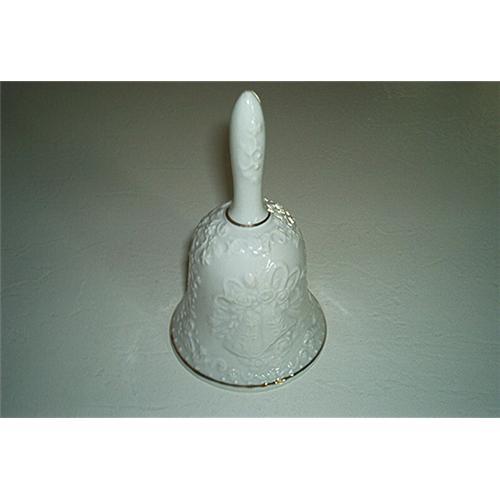 Featuring a beautifully decorated embossed Enesco Wedding Bell. (Beautiful enough to give as a gift). Ready for engraving. Gold trimmed. Flowers, butterflies and wedding bells decorate the outside and an area for engraving. Stands 5 1/2 inches high. 3 1/8 inches wide. Gold sticker still attached which states: Made by Enesco - #E-9010. Excellent Condition.