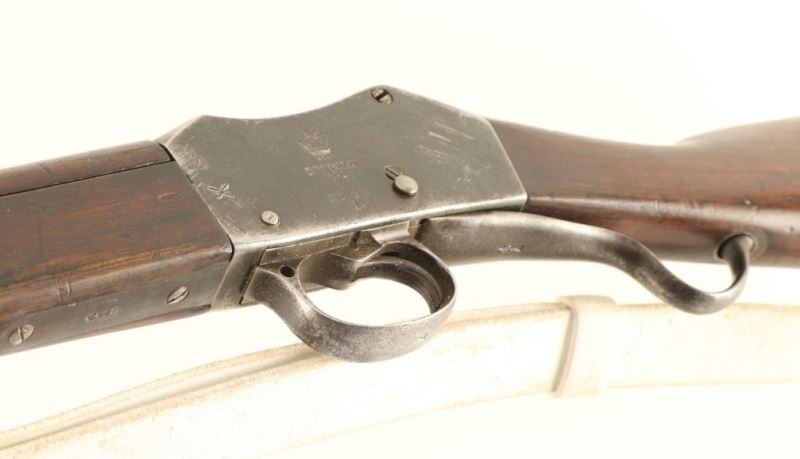 GOOD: Some minor replacement parts; metal smoothly rusted or lightly pitted in places, cleaned or re-blued; principal letters, numerals and design on metal legible; wood refinished, scratched bruised or minor cracks repaired; in good working order.