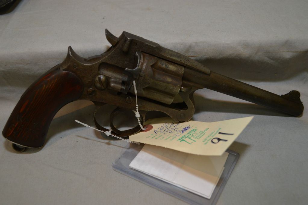 Enfield Model 1884 Mark II .476 cal 6 Shot Revolver w/ 5 3/4" bbl [ blued finish turned brown, pitted finish over all , needs work hammer sping, etc. ,appears to have newer grips stamped NWMP over 317 over Canada. in Mountie book by Don Klancher ] Ser # A2368 ANTIQUE NO PAL REQ