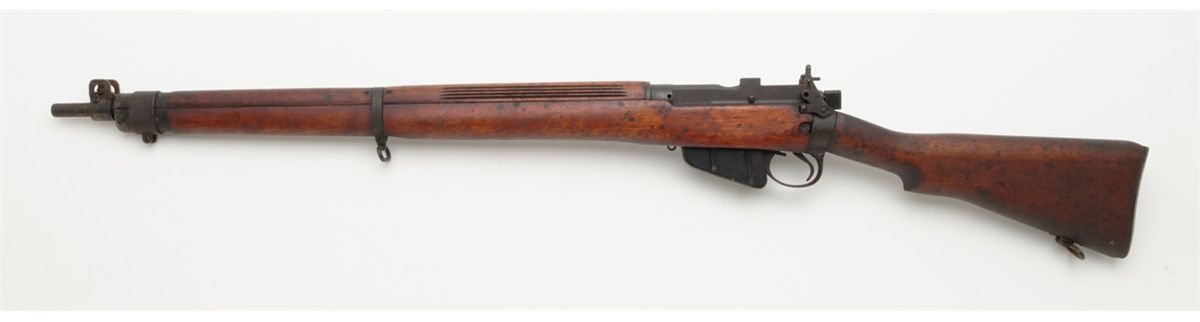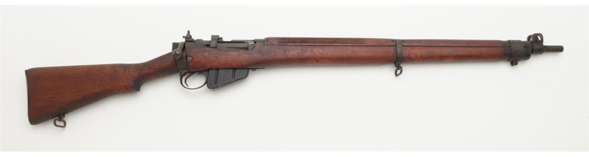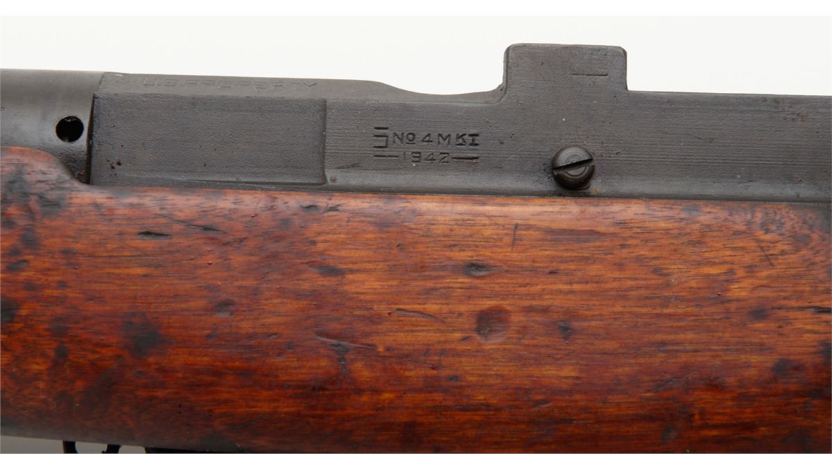 Enfield No. 4 MK I bolt action rifle, U.S. Property-marked (Savage-Stevens produced at Chicoppee Falls plant on contract), .303 British cal., 25” barrel, military finish, receiver dated 1942, wood stock, #12C8260 in overall good un-cleaned condition; an interesting variation of the classic Enfield. (C&R/PPT). Est.: $200-$400.