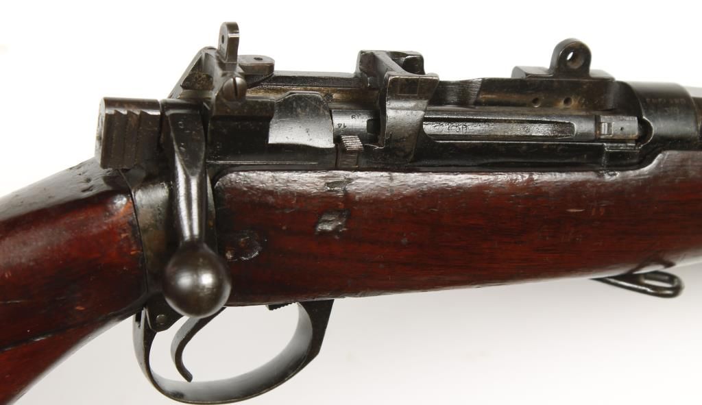 British military rifle sporterized. Maintains original sights, stock has been reshaped and cut down. No magazine. *Curio & Relic Firearm*