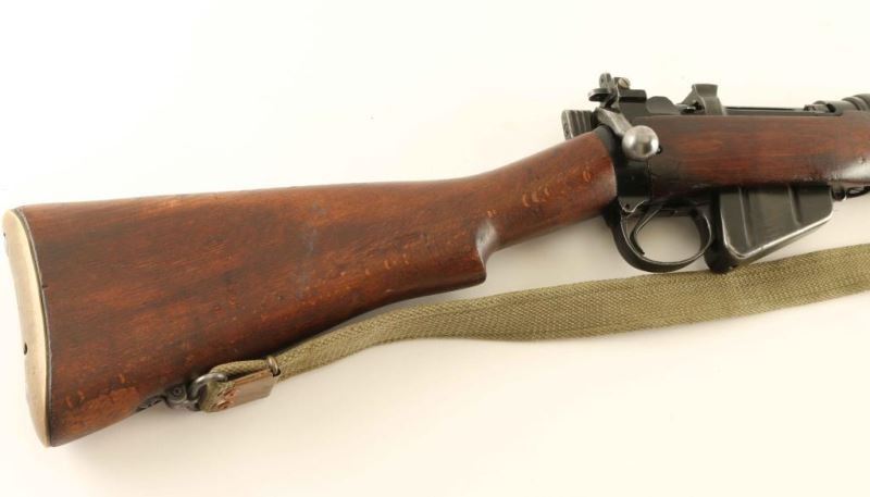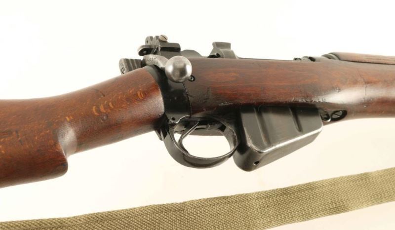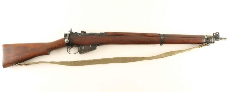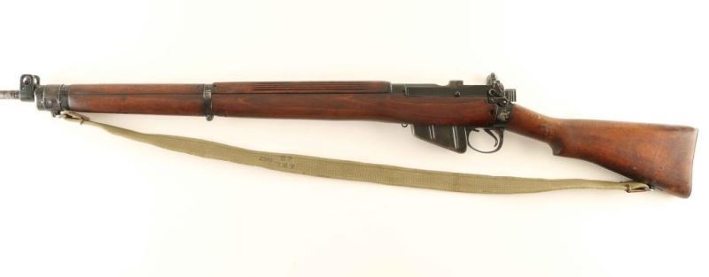 British military bolt action service rifle chambered in .303 British. This rifle was manufactured in 1943 as a No. 4 Mk I and was converted to a No. 4 Mk 1/2 in 1954 by Fazakerley. Imported by C.A.I. of St Albans, V.T. with import marks on the right side of the barrel near the muzzle Features a black phosphate finish, 25.2" barrel with bayonet lugs, shrouded blade front sight, "L" flip-up dual aperture rear sight, two barrel bands, smooth trigger, manual safety, stripper clip guide, 10 round detachable magazine, green canvas sling, full length grooved wood handguard, smooth wood forend and a straight grip shoulder stock with brass trapdoor buttplate. Rifle exhibits approximately 75% of it's black finish showing scattered wear & losses. Action is smooth, bore is very good and the wood stocks are very good. Condition is near NRA Very Good. ***C&R Firearm***