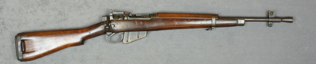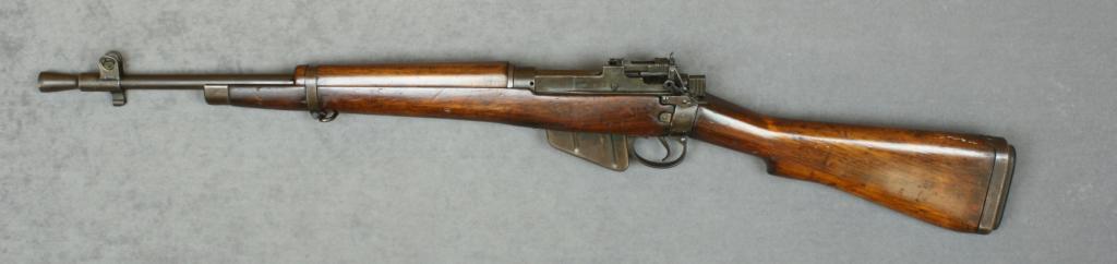 Enfield No. 5 MK1 bolt-action carbine, import marked, .303 cal., 20-1/2” barrel, military finish, sling swivels, wood stock, #V5295. This gun is in overall very good condition showing considerable muted finish, very goodbore, crisp action, very good markings and wood. Est.: $175-$350.