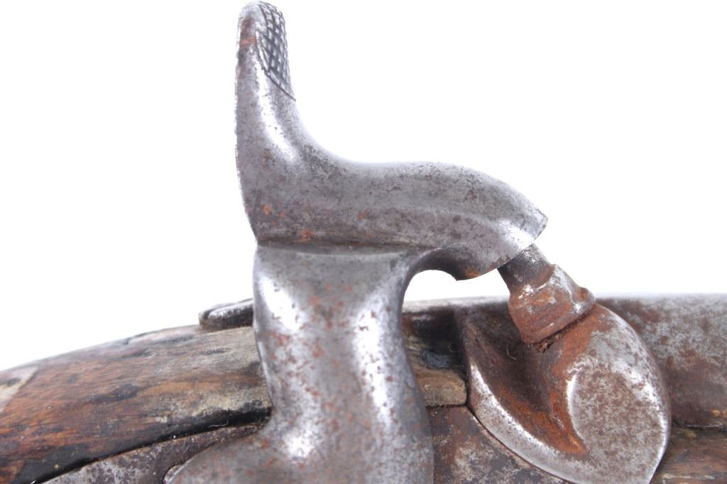 Featured in this lot we have an Enfield pattern 1853 smoothbored percussion cap rifle-musket chambered in 68 gauge. The rifle displays a 39" long round barrel, lock plate, percussion cap hammer, brass trigger guard, canvas shoulder strap, and walnut stock. The barrel shows a bright nickel finish with some rust and pitting along the exterior. The lock plate displays a faded crown stamp and is marked "1861 Enfield" with some rust and pitting. Both the American Springfield Model 1861 and the British Pattern 1853 Enfield rifled muskets, the most common weapons used during the American Civil War, used the Minié ball. This rifle shows good condition for its age. The brass butt plate is marked across the top reading "WTE 29". This rifle shows good mechanical condition with a tight action and working hammer. The stock of the rifle shows a medallion stamp reading "R M ENFIELD" with a crown insignia at the top. No Serial Number. This firearm qualifies as an Antique, and does not require FFL Transfer or NICS Background Check.
