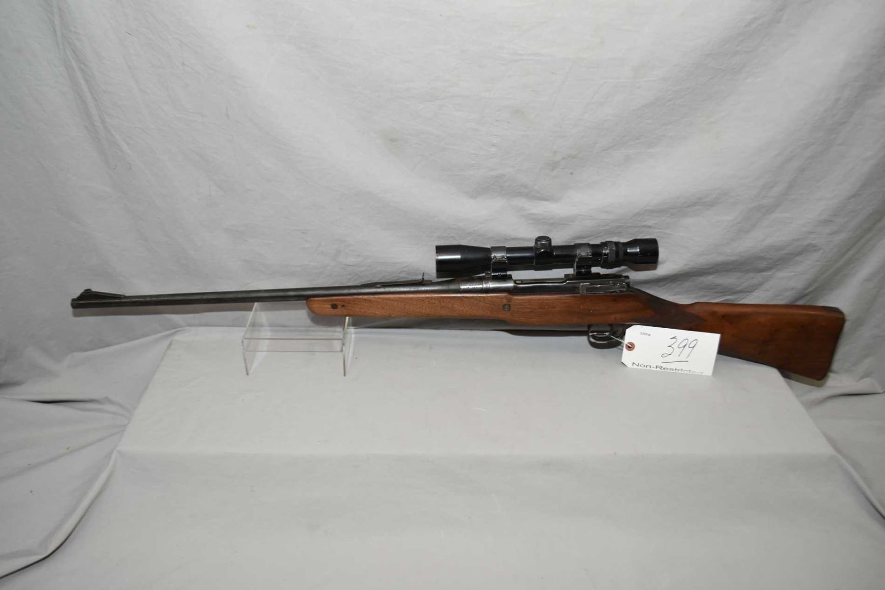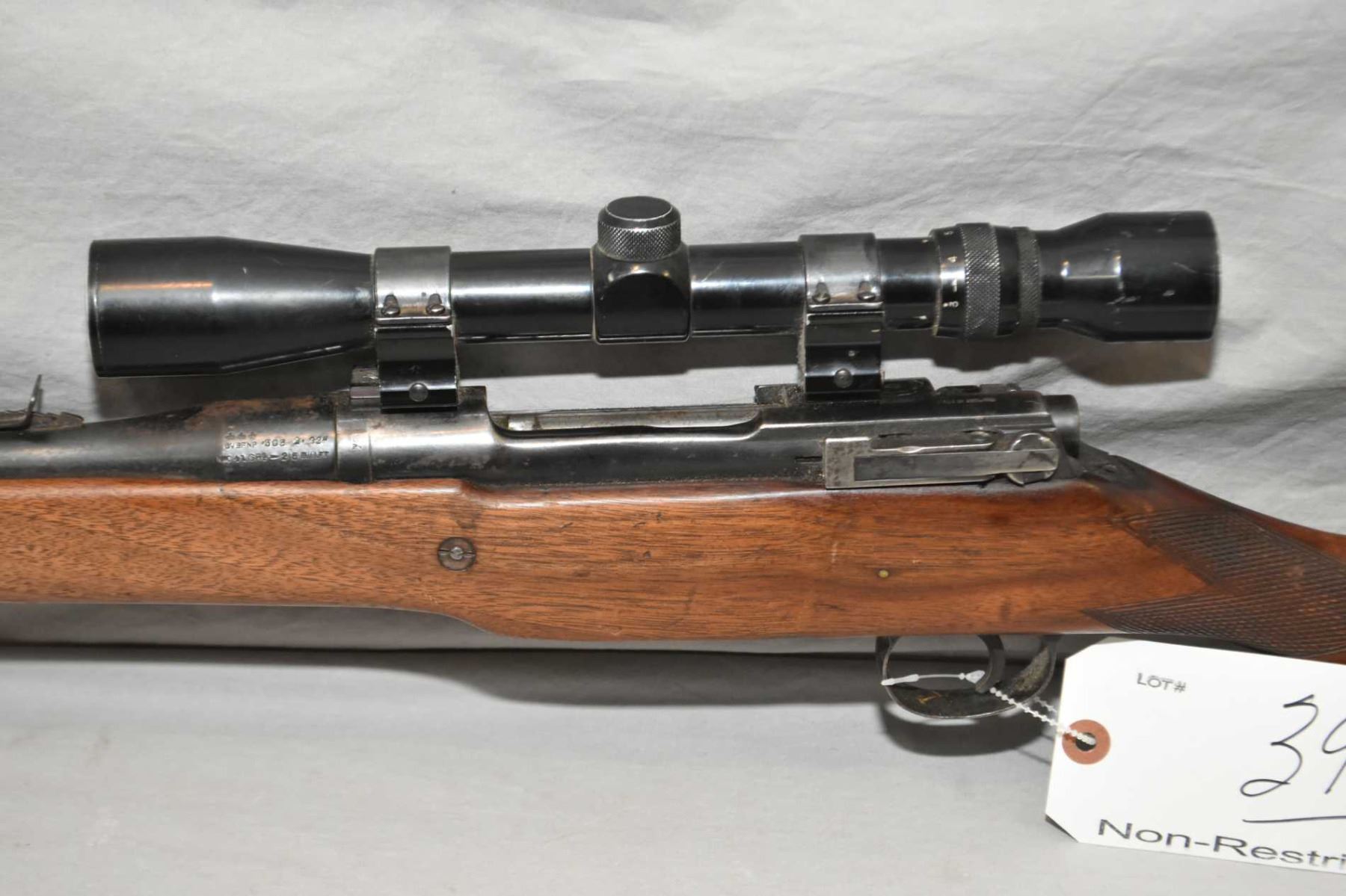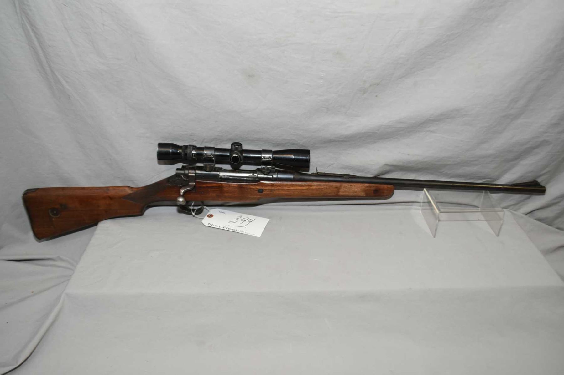 Enfield Pattern 1914 .303 Brit Cal Bolt Action Sporterized Rifle w/ 24" bbl [ faded blue finish, barrel sights, also fitted w/ 3 x 9 Variable Scope in Weaver rings, some marks to metal and sporterized wood, metal butt plate w/trap, checkered grip, missing sling swivel studs and stock insert ] Ser # 63029 ?