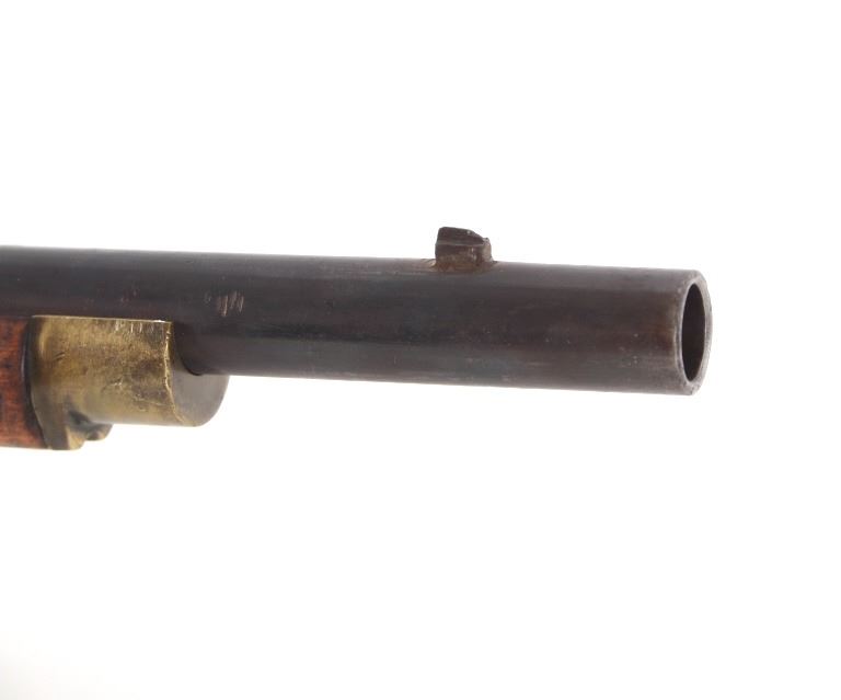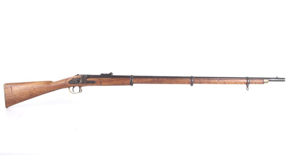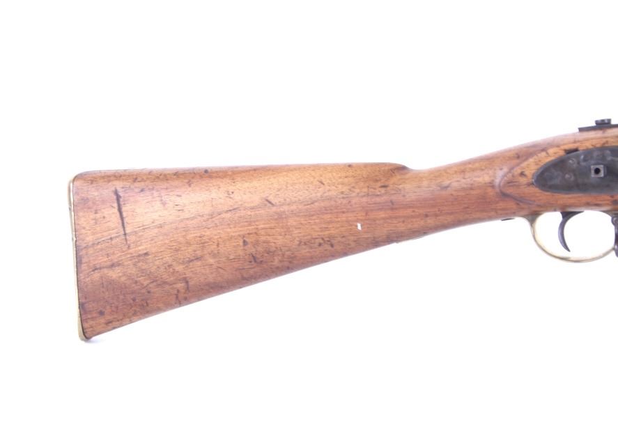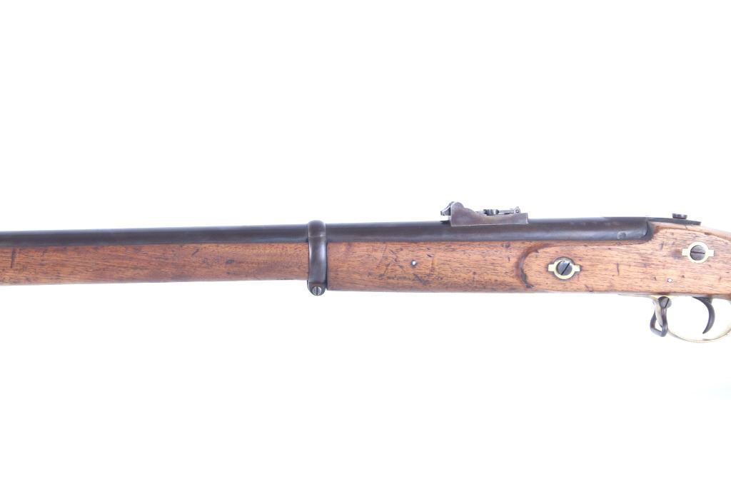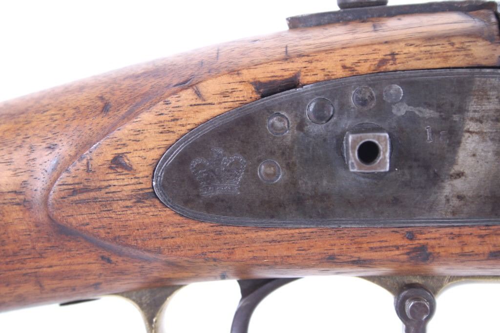 Featured in this lot we have an Enfield model 1862 Tower percussion cap rifled musket chambered in .58 caliber. The rifle displays a 38 1/2" round barrel, walnut stock, adjustable rear sight, brass butt plate and trigger guard, lock plate, and blue'd finish. The Tower British .58 caliber rifled musket was ordered by the thousands and delivered mainly to the Confederacy during the Civil War. This finely made weapon saw wide spread use through the entire conflict. After the war, many of these Tower muskets were retained by the soldiers who were issued them and many of these went West with the thousands of Ex-Confederate soldiers who did not want to remain in the defeated South during Reconstruction. According to the book Arming The West: A Fresh New Look at the Guns that were Actually Carried on the Frontier, “Myth-busting details from the Western shipping records of firearms giant Schuyler, Hartley & Graham, 1868-1886,” by noted arms historian Herbert G. Houze, beginning in 1868 and continuing through the 1870s, many thousand of these British .58 caliber Civil War surplus muskets were shipped to dealers and distributors in the West. They were considered reliable, powerful and accurate arms for economy minded westward pioneers. It also helped that many if not most men going West during this time had military experience and were familiar with the workings of the .58 caliber rifled musket. The lock plate is marked with "1862 Tower" with a stamped crown design. The lockplate shows good condition with the hammer missing. The barrel is stamped "24 24" with import and manufacture marks. The piece shows fair condition overall with wear due to age and use with the hammer and ram rod missing. No Serial Number. This firearm qualifies as an Antique, and does not require FFL Transfer or NICS Background Check.