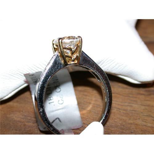 Diamonds on top of the band next to center stone and on the sides of the band - total 1 Whole Ct. CZ Center Stone set in 14 Kt.Gold 14 Kt. Yellow Gold head. Wholesaler's closeout. Professional appraisal available. Discount on multiple purchases.