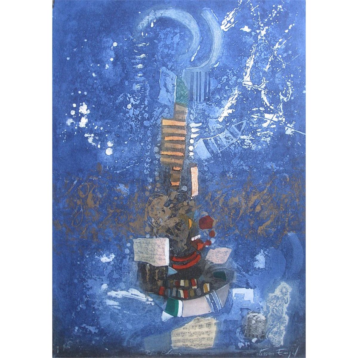 Artist, craftsman, innovator, technician, poet, musician - all of these terms are needed to describe Nissan Engel. In a prolific career spanning nearly four decades, Engel has developed a unique form of expression - rich, complex, highly personal - that defies easy classification. An artist of international stature, he is perhaps best known for his work in mixed media, in which he manipulates disparate elements to create harmonious, lyrical compositions. His body of work reflects a continual evolution, a constant seeking of new arenas in which to play out his ideas - painting, drawing, collage, printmaking. As he masters each new technique, he incorporates it into his work to achieve his ultimate artistic goals: harmony and equilibrium.