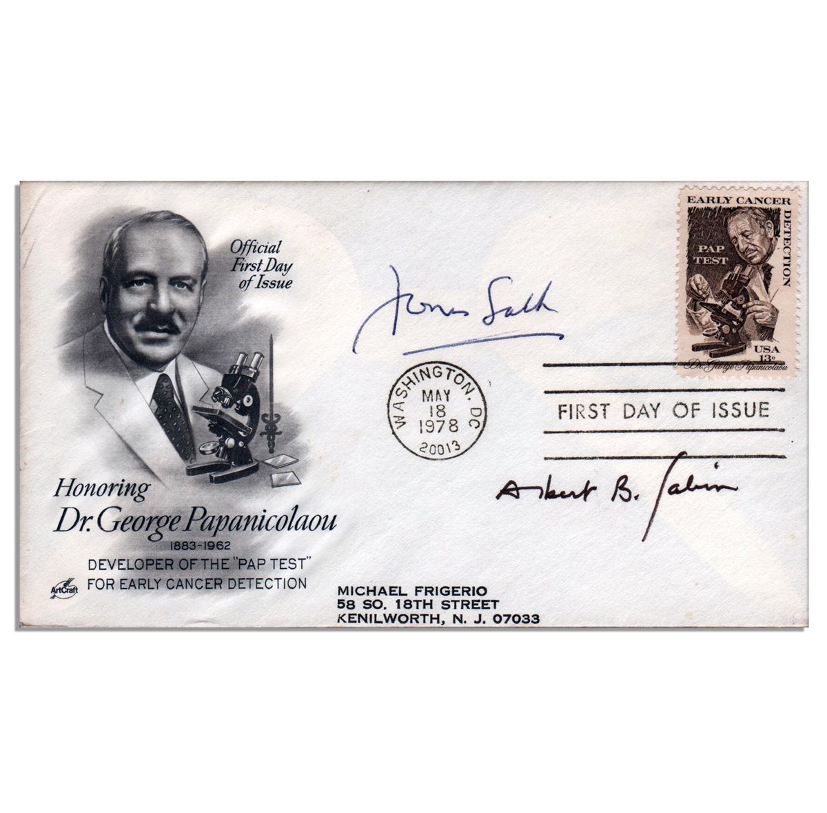 The Atlas 107D's engine start button. Scott Carpenter's depression of this button on 24 May 1962 launched the spacecraft carrying him on his 3-orbit mission. Button is encased in a lucite block. A plaque mounted to the front wooden base is engraved, ''To / LEO / With Continuing Gratitude / From / One of His Boys / SCOTT CARPENTER''. Each of the 4 sides of the base bear plaques, one labeled NASA in Cape Canaveral, another identifying the item, a third reading, ''MA-7 Second Mercury / Manned Orbital Flight / 24 May 1962''. The fourth is the logo of General Dynamics Astronautics, the manufacturer. Presentation measures 9.25'' in height and 4'' square. Minor scratching and slight separation from base, else near fine.